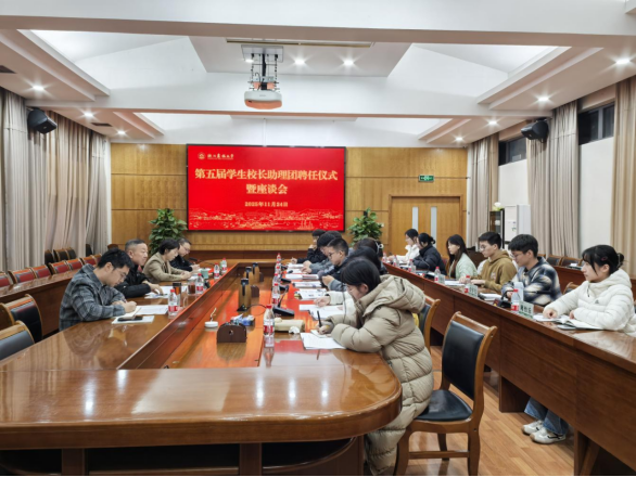 11月24日,校长吴家胜出席第五届学生校长助理团聘任仪式并与校助团成员进行交流。校办负责人、第四届校助团成员代表及第五届校助团全体成员参加会议。